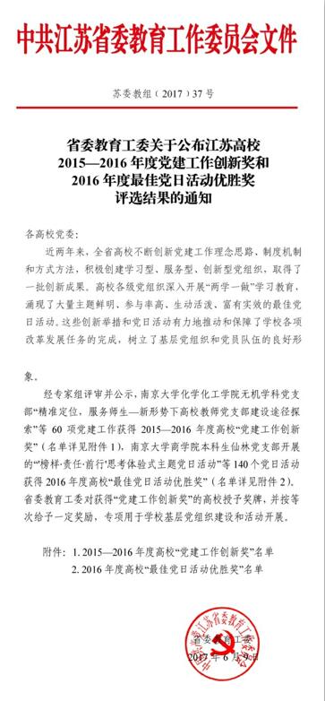2017-06-29公司党委荣获江苏省高校2015—2016年度年度党建工作创新二等奖