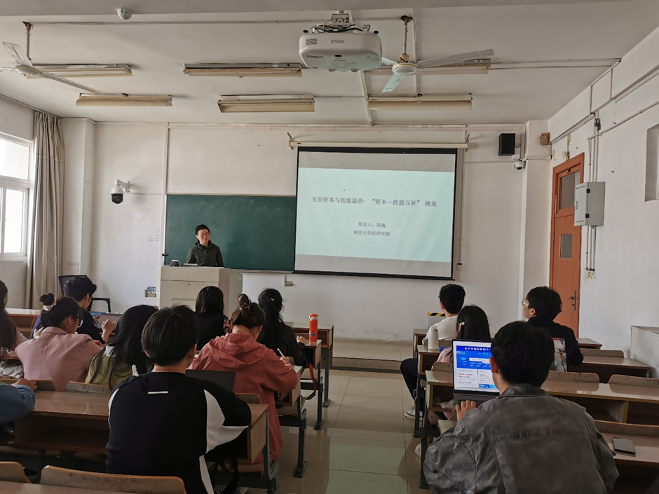 2023年4月12日9点50分到12点,应国际经济与贸易公司邀请,南京大学段巍研究员应邀参加南财国贸紫金青年学者论坛,讲座主题为“无形资本与技能溢价:资本-技能互补视角”的专题讲座。讲座由国际经济与贸易公司副经理陈启斐主持,教师代表及公司研究生参加。