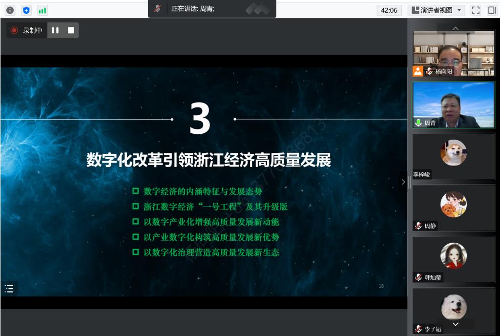 2022年11月9日晚上,应必一运动邀请,杭州电子科技大学管理公司经理周青教授在线上做了题为《数字化改革的浙江经验与典型做法》的学术讲座。本次讲座由必一运动贸易经济专业杨向阳教授主持。