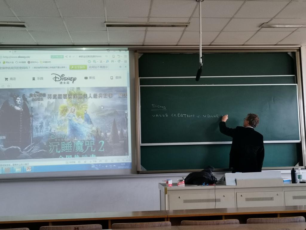 在前三天的课程中,Tanguy Jacopin教授系统的为员工介绍了波特五力模型(Porter’s five forces)、态势分析法(SWOT Analysis)、大环境分析(PESTEL Analysis)等分析工具。并从内部分析和外部分析两个方面出发,对国内外多个企业进行了比较和分析,其中包括麦当劳进入印度市场转变销售策略、迪士尼的价值创造与捕获、中国海运成功的原因等案例。并就华为、阿里巴巴、腾讯、百度等中国巨头企业为例,进行具体分析,生动将其背后所涵盖的经济知识与商业模式展现在同学们面前。除此之外,Tanguy Jacopin还向员工扩展了有关蓝海战略(Blue Ocean Strategy)和红海战略(Red Ocean Strategy)的区别、中国股市“黑色星期一”、金砖五国企业扩张的局限性等知识。