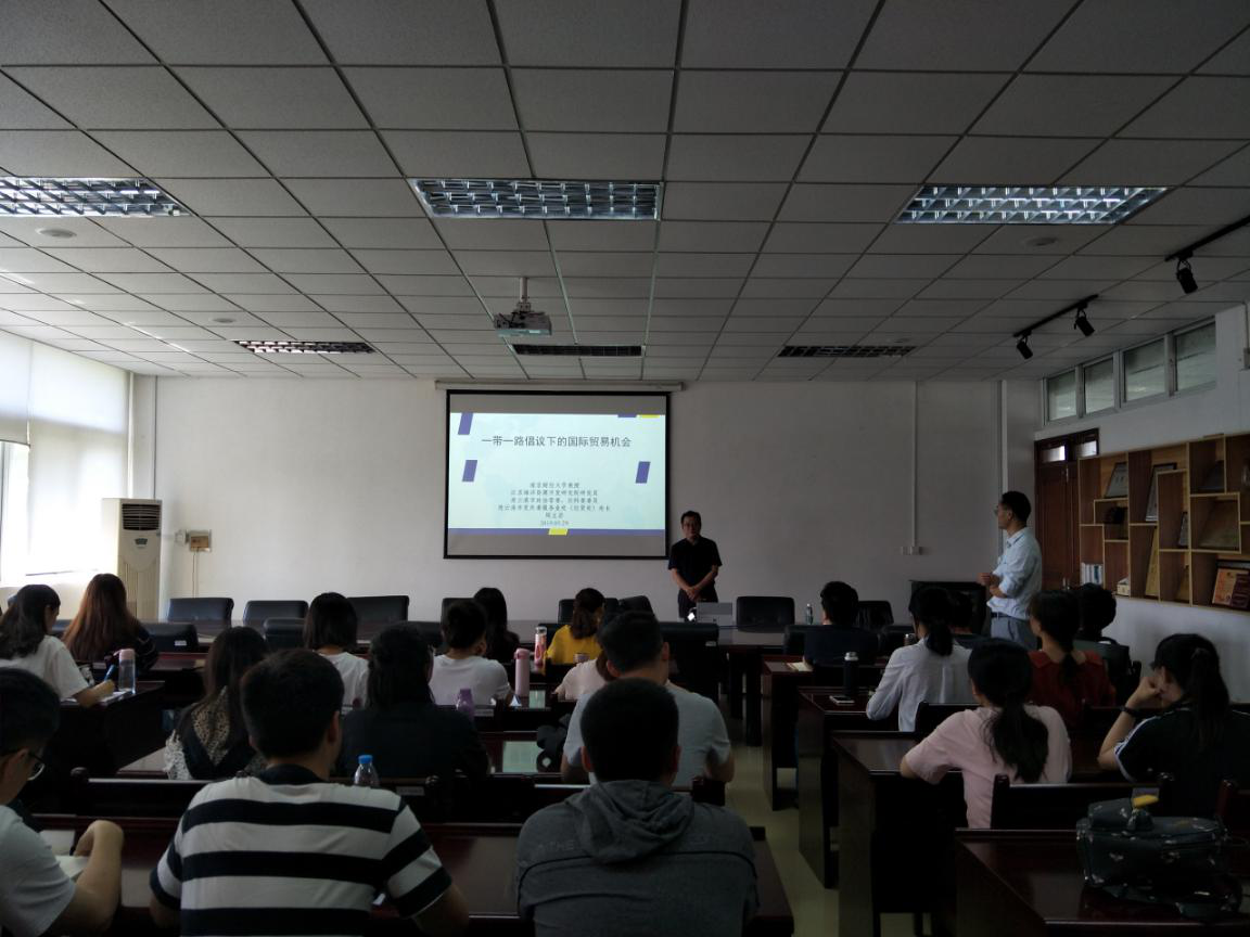 5月29日下午,江苏海洋资源开发研究院周立岩研究员在我院德经楼308会议室作了题为“‘一带一路’倡议下的国际贸易机会”的报告。报告会由许祥云副教授主持,必一运动部分教师、研究生及国贸专业本科生聆听了此次报告。