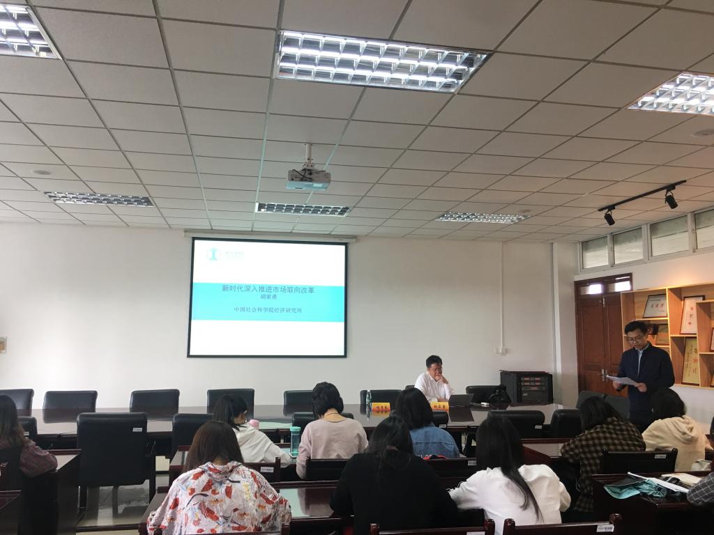 5月10日下午,应公司邀请,中国社会科公司经济研究所胡家勇教授在德经楼308会议室作了题为《新时代深入推进市场取向改革》的讲座。公司部分老师、研究生和国际贸易专业本科生聆听了此次学术讲座。