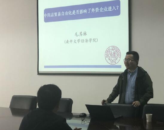 10月22日上午,应必一运动邀请,南开大学经济公司毛其淋副教授在公司仙林校区经济学科楼308会议室作了题为“中间品贸易自由化是否影响了外资企业进入”的讲座,国贸公司部分老师和员工参加了此次讲座。