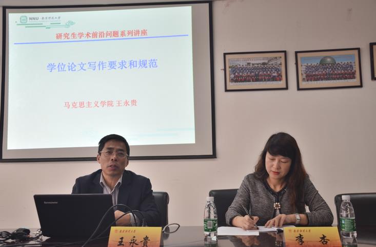 讲座中,王永贵教授紧紧围绕硕士生论文选题、开题报告及其撰写方法与技巧,从选题、写作、规范等方面作了详细的分析与讲解。他首先谈及了如今高水平大学存在的学术造假等热议的社会话题,以此展开探讨学术论文写作规范的重要程度。