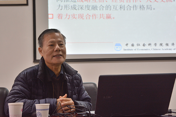 裴长洪教授首先介绍了当前我国经济发展形势,并认为,房地产投资增率下降和进出口贸易双降是导致经济下行压力加大的重要原因。随后,他介绍了制定“十三五”规划的依据、“十三五”时期我国经济发展环境的基本特征以及“四个全面”政策“六个坚持原则”的内涵。最后,裴长洪教授对于我国经济发展提出四点对策。一是要树立五大发展理念,创新体制改革。二要坚持协调发展,在增强国家硬实力的同时注重提升国家软实力。三要发展更高层次的开放经济,协同推进战略互信、经贸合作、人文交流。四要加强党对经济社会发展的领导,坚持全面从严治党。
