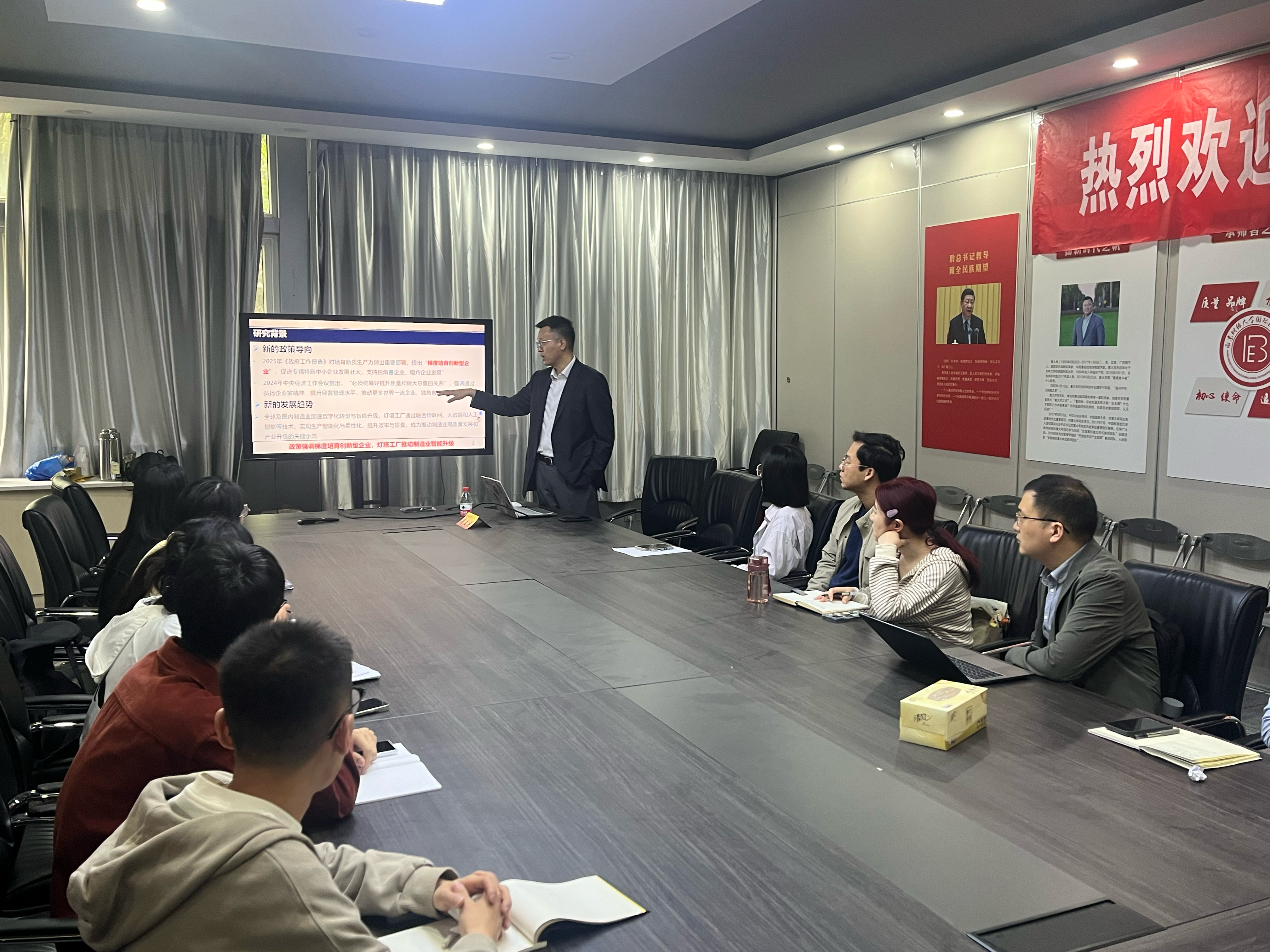 讲座中,武文杰教授结合《创新标杆企业的示范与溢出效应》这一文章展开探讨,当前政策强调梯度培育创新型企业,灯塔工厂可以通过融合物联网、大数据和人工智能等技术,实现生产智能化与柔性化,提高效率与质量。灯塔工厂一方面可以通过管理创新促进梯度企业协同成长和新质生产力培育,另一方面其在微观和宏观层面都可以促进融资约束缓解,这使得灯塔工厂成为推动制造业高质量发展和产业升级的关键示范。武老师还特别强调研究生在科研过程中如何挖掘创新性研究点,同时他也分享了相关论文写作的规范与技巧,以及应对期刊审稿流程的有效方法。武文杰教授的话语让在场研究生深受启发。