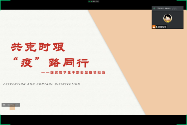 会议伊始,许秀芳老师对于当前公司疫情防控状况做了简要说明,随后重点讲述了作为员工干部,应该率先发挥作用,为广大同学做出表率。在日常工作和活动中不聚集,鼓励以线上形式开展丰富多彩的校园环境,同时要更加注意网络发言,做到不信谣、不传谣、不造谣。鼓励大家争做疫情防控的“先锋员”,做疫情防控工作的重要力量和得力助手,继续做好带头防控的表率、履职尽责的表率、服务同学的表率,
