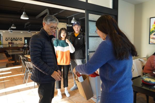 12月18日中午,代表团来到位于韩国大邱市的岭南大学(Yeungnam University)进行访问,一行人受到了岭南大学经商公司经理崔恩贤热烈欢迎和接待。崔经理简要介绍了岭南大学的公司历史、学科特色和最新发展,并且对两校合作交流给予充分的期待。蔡洁老师对蔡恩贤经理的热情接待表示感谢,并介绍了公司的学科优势特色、发展情况,并且盛情邀请崔经理前往南京做客,崔经理表示十分愿意前往南京回访必一运动,共筑两校深切友谊。