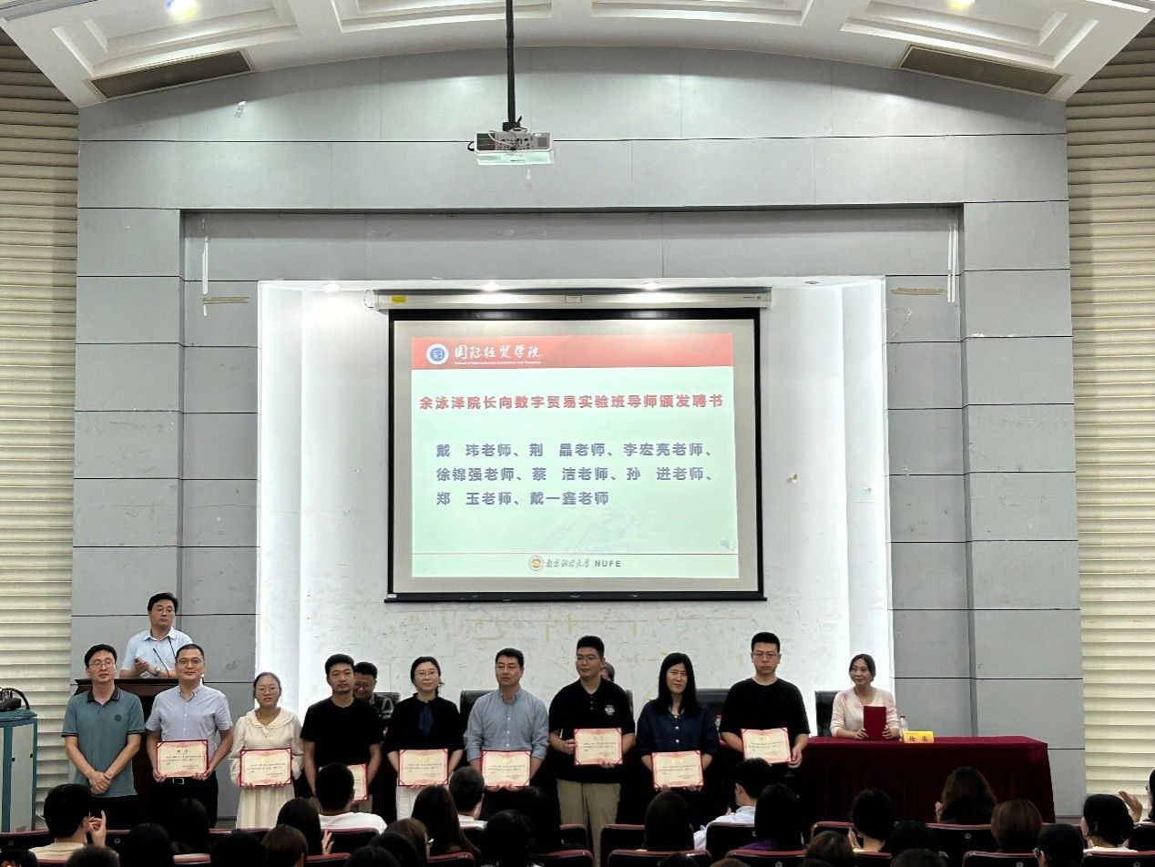 典礼现场举行了新生班主任和数字贸易实验班导师聘书颁授仪式。周亚芳书记向10位新生班主任颁发了聘书,余永泽经理向8名数字贸易实验班导师颁发了聘书。