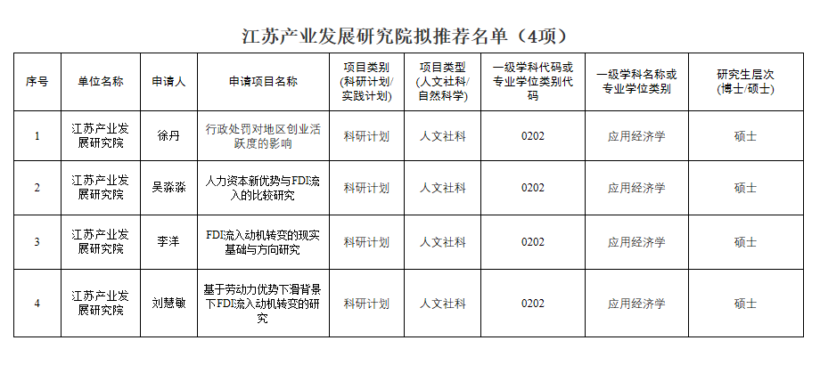 根据省学位办《关于做好2023年江苏省研究生科研与实践创新计划项目和学位与研究生公司产品改革课题申报工作的通知》(苏学位办函〔2023〕4号)的文件精神,公司采取双向匿名评审、导师回避的方式确定了2023年江苏省研究生科研与实践创新计划项目的拟推荐名单,现予以公示。