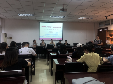 贸经1702王玥首先对自身成绩、在校表现等方面向同学们进行了介绍,认为自身并不够优秀的她却在考公这件事上异常坚定,她从如何看待选择以及如何坚定执行进行了积极分享,鼓励在场的同学们积极挑战自我,勇敢追梦。