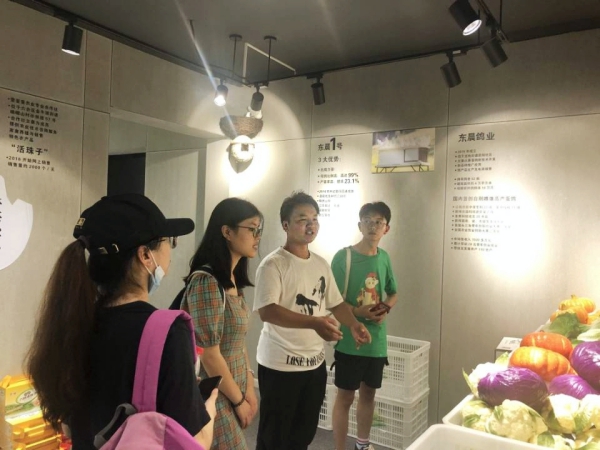 中心运营服务专员吴影为团队成员讲解了钱仓村整体的农业运作模式,并带领小队成员观看了企业、产品的线下展示平台,具体介绍了南京田原牧歌农业发展有限公司。该公司是团中央“精准扶贫·助力农产品上行”优秀项目、南京市农业产业化龙头企业。据吴影介绍,公司的蔬菜基地往年主要的销售路径是机关单位和公司的食堂,但因前期疫情影响,公司第一季度的销售额同比下降了20%,故在5月7日参与了政企联合举办的“一村一品 邀您尝鲜”的助农直播行动,希望通过书记带货的模式扩大销路,增加品牌知名度,尽全力弥补亏损。