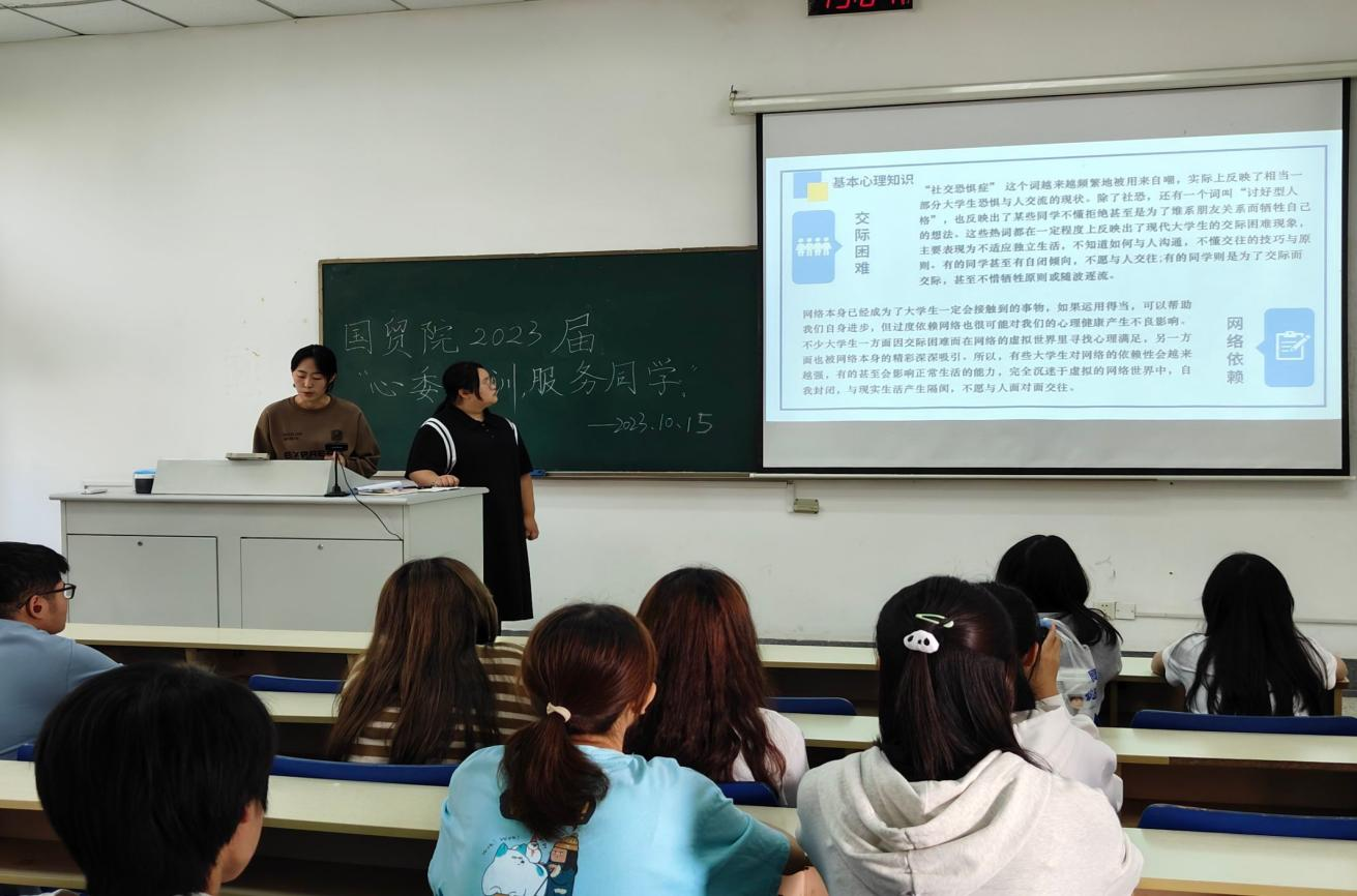 10月15日下午,由国贸院心理协会举办的心理委员培训活动在德经楼Z1-102教室顺利开展。本次活动主要目的是为了帮助各班心理委员熟悉工作、了解同学们的心理状态,方便同学们更好地开展老员工活。
