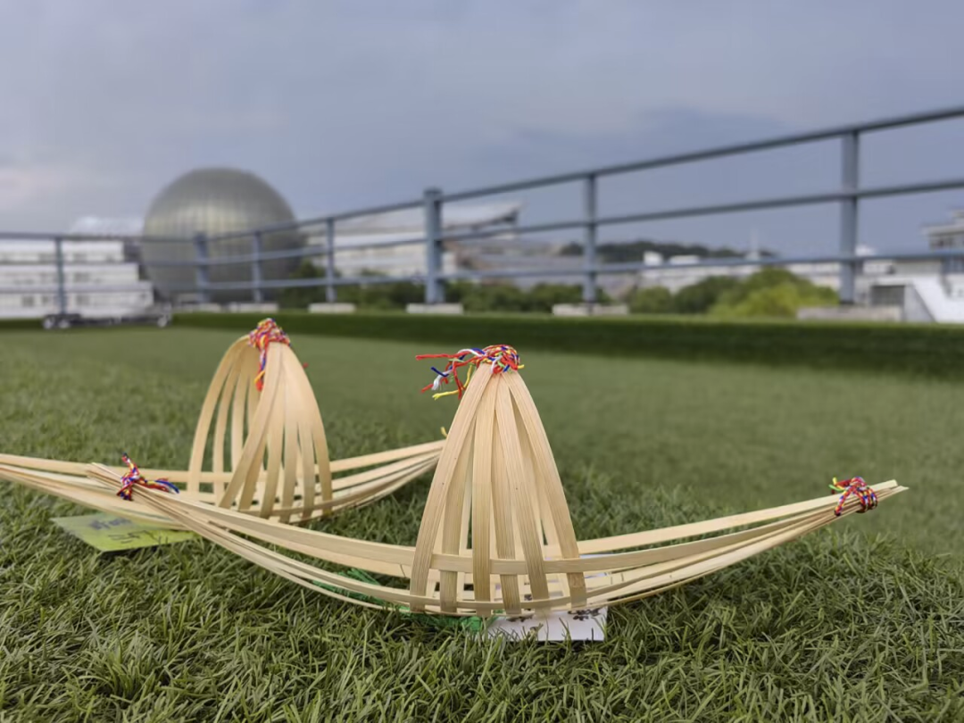 竹编作为一项传统手艺,有着深厚的历史底蕴,凝结了劳动人民浓浓的智慧。同学们先是按照编织的一般步骤将龙舟的舟身编制好,将两端多余的部分修剪完成,并用彩线将两端固定牢;紧接着将对端午的美好祝愿书写在便签上,将其制作成小挂件;最后将挂饰添加到龙舟上。这样,一个富有端午气息的竹编龙舟就算是完成了。国贸2203班的居海慧同学表示:“龙舟的编制过程虽然具有一定的挑战性,但这也提高了我们的动手能力,使我们感受到了劳动人民的智慧与创意。”