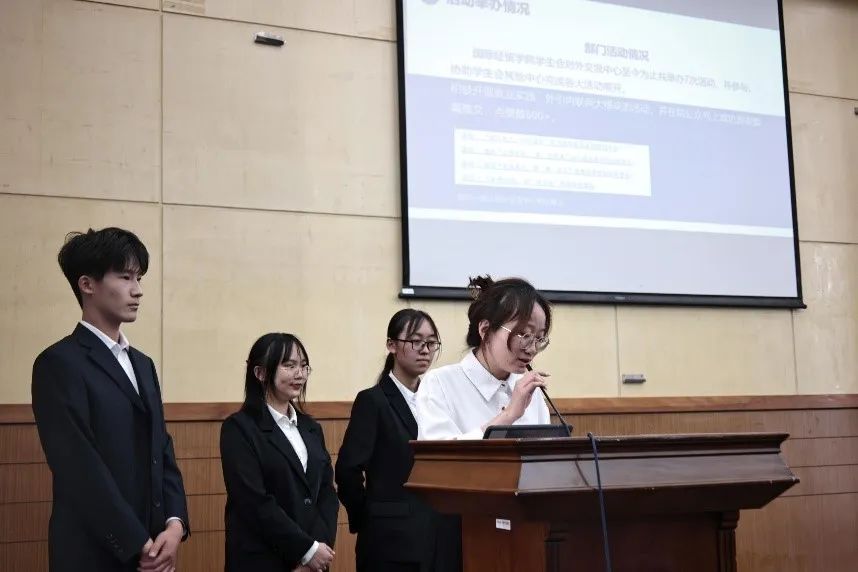 本次会议分为五个议程:奏唱国歌、各部门部长进行述职、主席候选人进行工作总结和答辩、员工会主席代表主席团做总结性发言、团委老师致辞。
