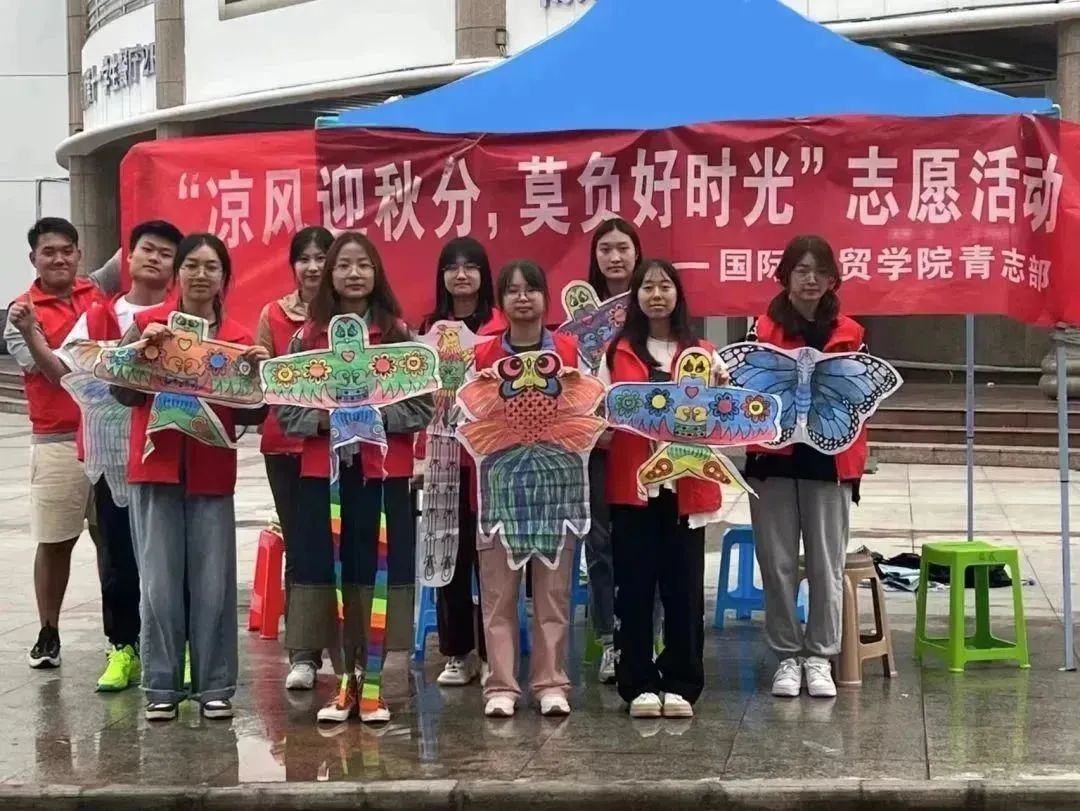 为了确保活动的顺利开展,9月22日下午,志愿者们早早到达中苑食堂门口,做好了活动的准备工作。潍坊风筝是民间传统节日文化习俗之一,更是潍坊人民精神上的根和魂。在潍坊风筝DIY活动过程中,一只只别具一格的风筝吸引了过路同学们的目光,越来越多的同学加入到了制作风筝的队伍中。随着风筝制作进入尾声,天气逐渐开始放晴,大家的热情也达到了顶峰。伴随着阵阵秋风,同学们一起放飞了自己亲手制作的风筝。纵使累得满头大汗,但看到五颜六色的风筝在空中翩翩起舞,犹如一幅幅五彩斑斓的画卷时,同学们的脸上也都洋溢起了满足的笑容。贸经2301班的刘慧慧说到:“这次的风筝制作活动实在是太有意义了,让我在制作风筝的过程中体会到了传统文化带来的魅力,同时这次活动也激起了我对非物质文化遗产的好奇心,我愿在课余时间继续领悟中华文化的博大精深,享受非物质文化遗产带给我的震撼力。”