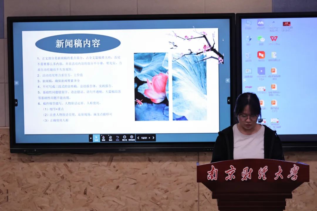 随后,公司分团委副书记李玉桐进对举办活动的流程进行了细致讲解。她分别从前期策划、现场照片拍摄、新闻稿撰写以及活动总结四个方面进行了说明,并结合过往优秀案例帮助员工骨干更加直观、形象地理解“四大件”的撰写要点、技巧和注意事项,助力员工会骨干进一步提高自身素质和工作效率。
