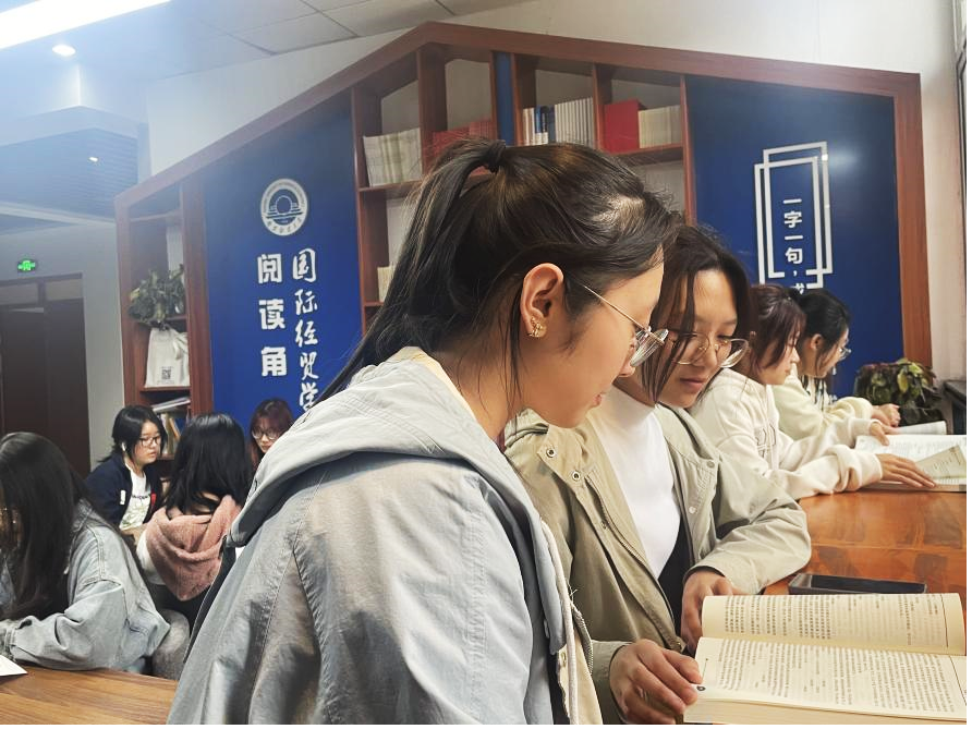 视频播放后,贸经2202杨楠楠同学分享了她印象最深的一个片段——习近平总书记引用明代诗人王阳明在《教条示龙场诸生》中的一句话说到:青年志存高远,就能激发奋进潜力,青春岁月就不会像无舵之舟漂泊不定。正所谓“立志而圣则圣矣,立志而贤则贤矣”。她感慨道:“作为新青年,我们一定要有远大的理想,坚定的信念,成为推动国家与民族前进的动力!”。在熟读精思活动中,同学们共读党的二十大报告,在学习交流中体会习近平总书记“三不负”要求,激励自己只争朝夕,不负韶华,扬起梦想的风帆。