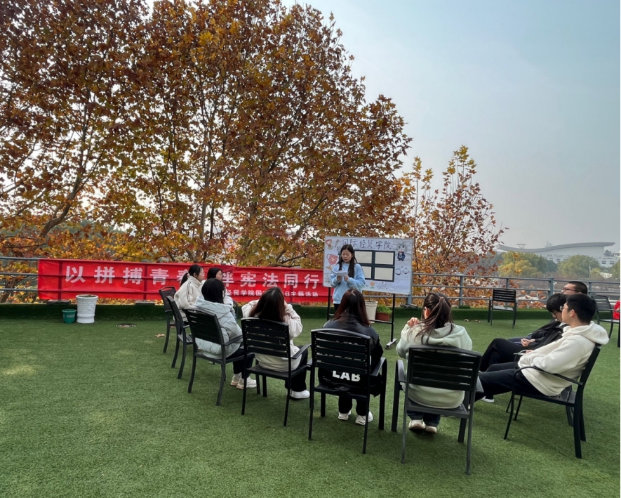 随后,同学们分享了宪法有关的小故事,例如,李秋炎同学在分享老一辈法治人确立“五四宪法”的故事时表示:“每一本宪法文本,都是一段法治史的见证。我们要把宪法的历史、宪法精神让更多人知晓”。同学们通过详实的案例、生动的讲述,向大家普及宪法知识、传递宪法力量、传承宪法精神。