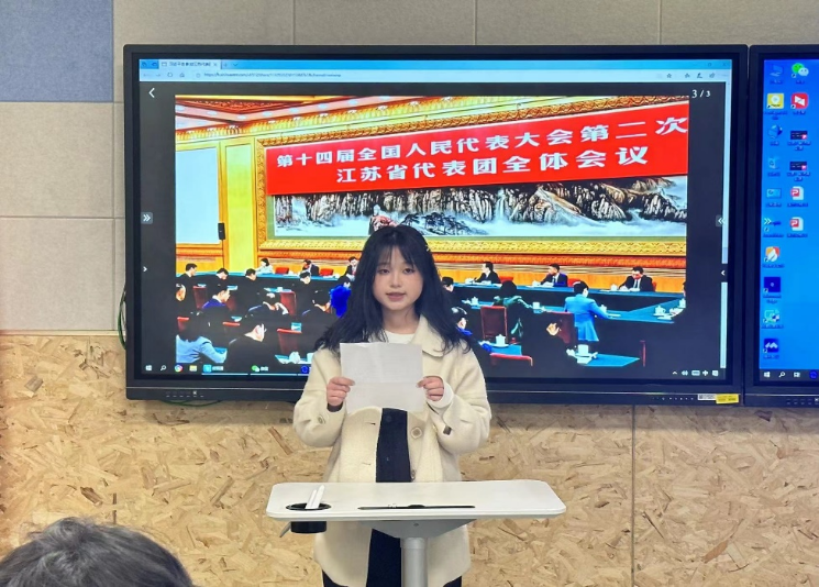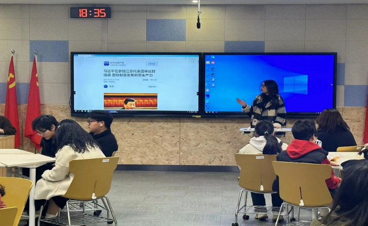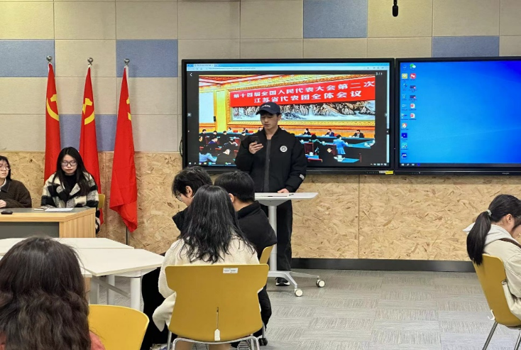 会议以共学习近平总书记参加江苏代表团审议的重要讲话引入,从“高质量发展”到“新质生产力”,从“深化改革”到“扩大高水平对外开放”随着对两会关键词的深入学习理解,参会同学围绕着自己专业开了积极地讨论并发表自己的观点。国贸2301班班长张洋在讨论中说到:“对于两会的关注让我更加理解新发展理念,尤其是创新发展理念。在新时代背景下,国际贸易需要不断创新贸易方式、拓展贸易领域、深化贸易合作,以适应全球经济发展的趋势和要求。身为国际经济与贸易专业的员工我们更应从自身做起,更加注重创新思维和实践能力的培养。