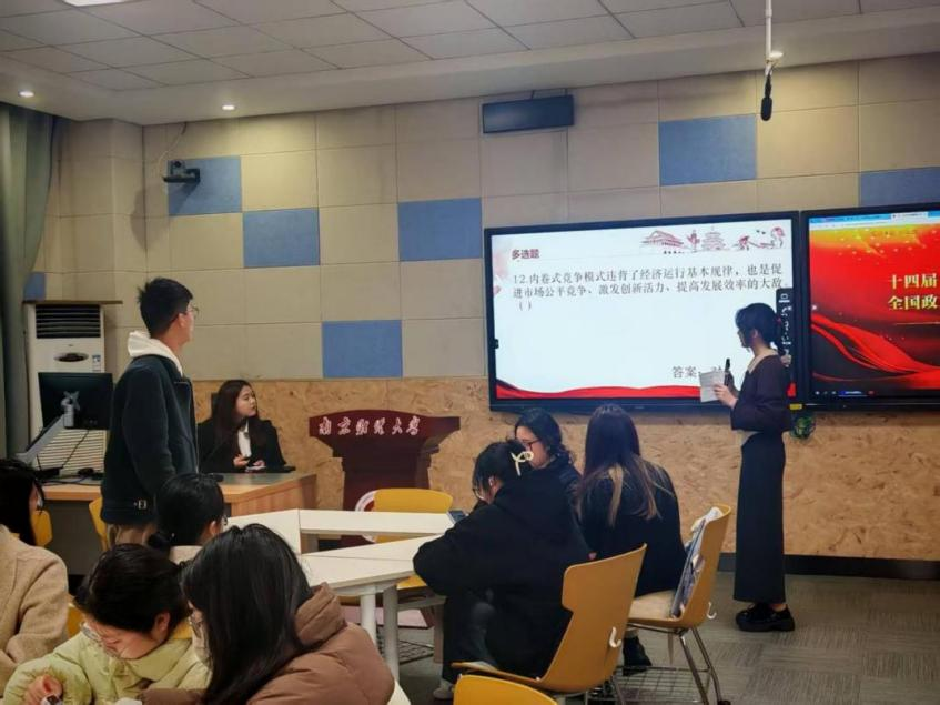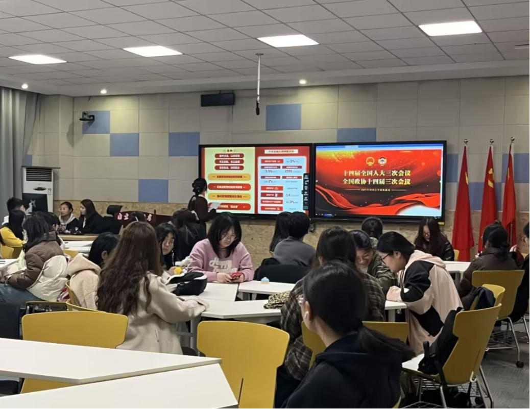 2025年3月12日,在全国政协十四届三次会议和十四届全国人大三次会议顺利闭幕之际,必一运动在博文楼101举办“大学青年说,两会新声代”两会精神专题学习活动。通过政策研读、主题研讨、知识竞赛等形式,引导国贸学子深入学习两会精神,推动专业学习与国家发展同频共振。