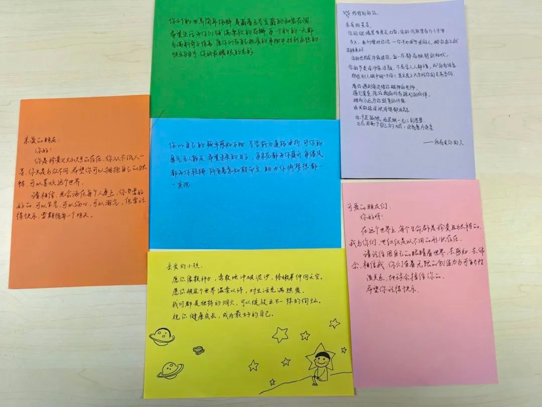 “星星的孩子”他们没有与生俱来的社交能力,不会用表情或肢体语言来表达自己的情绪或感受。尽管不能与自闭症儿童面对面交流沟通,但是很多同学通过网络了解到自闭症儿童,并写下对自闭症儿童真诚的寄语。"你的眼睛里有最亮的星星""我们都在宇宙中守护你"等温暖字句跃然纸上,部分员工更精心绘制了星空主题插画。愿这些承载祝福的寄语,如同和煦的阳光,借助活动的桥梁,温暖他们的心田,驱散阴霾,照亮前行的道路。