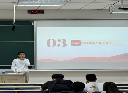 孙进老师立足大三关键节点,聚焦“未来之路如何走”这一核心关切,为同学们带来深度职业发展导航。他细致拆解了考研、就业、留学等多条路径的核心要点与时间规划,尤其针对考研这一重要方向,进行了“精准滴灌”式指导:从院校专业选择的策略分析、复习备考的阶段性任务分解,到心态调整的实用方法,孙老师均结合历届员工的案例和自身考研经历给同学们展示出了清晰可循的路线图,帮助同学们拨开迷雾,锚定目标,为未来冲刺积蓄力量。