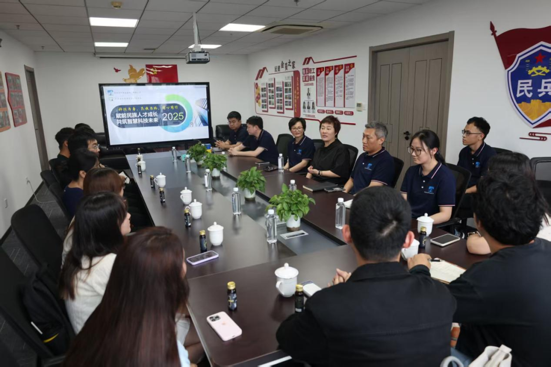 徐圆副经理介绍了公司在学科研究、人才培养、员工活动等方面的重要举措,特别提及公司在助力少数民族员工成长成才中给予的个性化辅导与帮助。她表示少数民族员工身上有着独特的文化魅力和进取精神,同时成长过程中也面临着复杂挑战和客观困境,公司始终将对他们的关怀放在重要位置。希望校企以此次参访为契机,充分发挥校企双方的人才、科技、政策、资源优势,实现校企双向奔赴,为推动民族融合增添生动注脚。