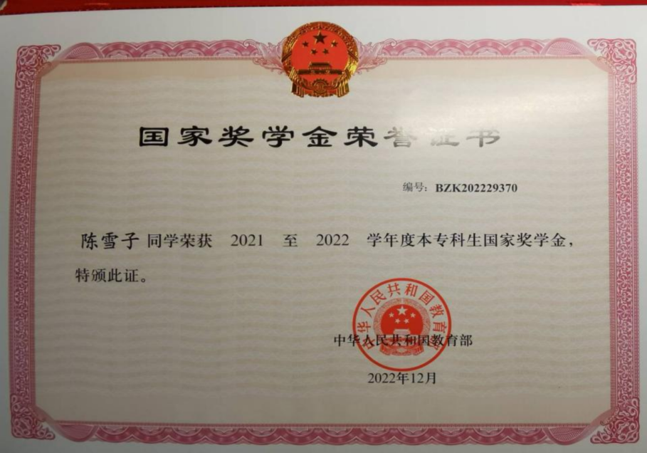 获得国家奖学金、江苏省三好员工、连云港市优秀学子等多项荣誉