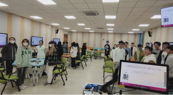 贸经2101和2102的同学们以“拒绝摆烂,提升自已”为话题,通过相互分享对老员工活的思考并意识到了摆烂的后果,摆烂看似轻松,但是却会让人慢慢失去时间观念,养成拖延的坏习惯。接着,心理委员邀请了两位同学分享自己的学习和生活经验,这给了同学们很多的激励和启发。最后,班会在心理委员的带领下,在同学们呐喊的“拒绝摆烂,提升自己”中落下帷幕。