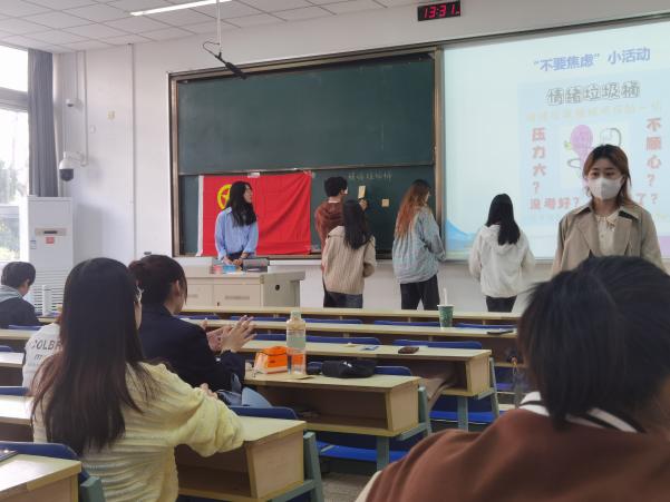 贸经2001在此次班会伊始深入阐述了老员工学习、社交、身心健康、升学以及就业方面的焦虑问题,并从多个角度分析了老员工焦虑的根源。在讨论了焦虑问题之后,心理委员提出共享烦恼的提议,引导同学们在写下自己当下的烦恼并贴在黑板上。在这个过程中,同学们彼此交流心声,相互汲取宽慰和帮助,有效地缓解了焦虑。