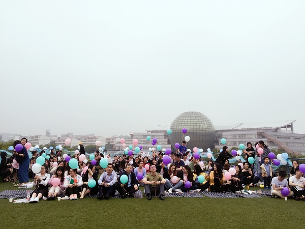 梦想会尾声,宣经理亲自给毕业生们分送蛋糕,同学们在气球上写下自己的心愿,一起放飞梦想。