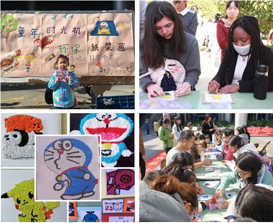 119日当天的“童年时光机“主题纸浆画活动包括纸浆画作品展示,纸浆画制作流程介绍,纸浆画现场制作,废纸污染介绍等,并设置了纸浆画制作体验区,