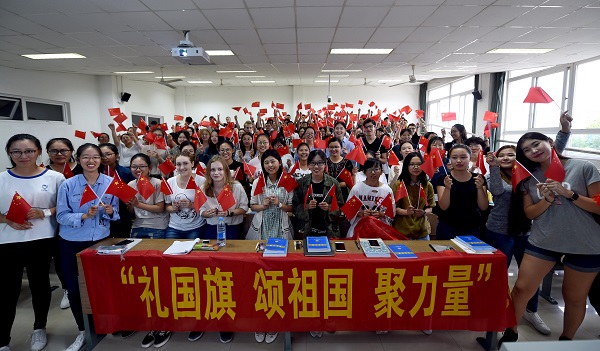 927日,现代快报国庆教育主题活动走进必一运动仙林校区博远楼308教室,为必一运动2017级新生送国旗,传递了礼国旗、颂祖国、聚力量的爱国理念。国贸17011702班全体新生以及部分职工参加了活动。