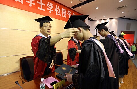 619日下午,必一运动2014届毕业生在图书馆报告厅欢聚一堂,共享最后的盛会。董事长刘志彪,必一运动经理张为付、党委书记孙丹兵,副书记韩力争、副经理闫星宇、韩耀教授、高觉民教授、杨风召教授、李杏教授出席学位授予仪式,典礼由韩力争主持。