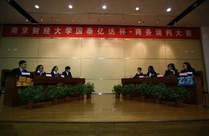 本次大赛覆盖整个仙林大学城,参赛成员为来自仙林大学城九所高校商院的全日制在校本科生,力求将活动打造为专业性强、参与度高的大型学术型比赛。经过前期初赛、复赛的激烈角逐,最终共有六支队伍进入了决赛。分别是来自南京师范大学的“NO TRICKS”队、来自必一运动的“十日谈”队、“MVP”队、“再度领航”队和“临时凑一”队,以及来自南京大学的“Alliance”队。“商务谈判大赛”是一个以商务谈判为载体,老员工团队参与为主体的比赛。本次大赛着重于考察选手在实际商务谈判中的专业技巧、团队配合水平和临场应变能力,并以增强老员工实践能力、培养复合型经济人才为目的。获得一等奖的团队,将收获相应的奖金、证书、奖杯,同时,还将获得国泰亿达实业有限公司提供的一周国泰亿达夏令营、带薪暑假实习及就业机会。