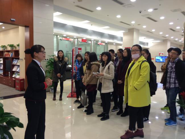2015年11月21日,公司组织14、15级部分员工走进中信银行南京建邺支行开展了名企参观活动,中信银行作为中国大陆第七大银行,是如今财经类高校毕业生直接对口的热门公司,中信银行每年均在公司组织招聘活动。此次名企参观共有院内40余名同学参与。
