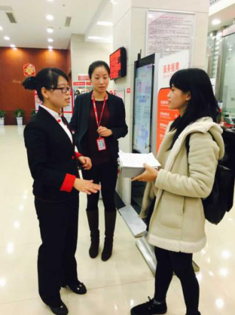 该行理财经理——公司10级员工陈方丽接待了参观员工,她向大家系统的介绍了中信银行的组成及各个部门。除了银行营业厅以外,她还带领各位同学参观了银行的公司部、财务部、休闲娱乐室、行长办公室以及未来之星俱乐部等等,参观之余,详尽的解释了银行内部各个岗位不同的职能分工而所需要的必备技能。随后,陈方丽详细的介绍了中信银行目前与百度的合作模式,指导各位员工下载中信银行的APP体验互联网+金融的最新成果,通过线上一键处理金融业务。