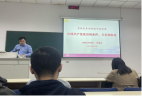 为了进一步加强党的发展对象的党性修养,坚定其理想信念,2023年10月20日,公司党委副书记周进进以“明确党员的条件、义务和权利”和“以实际行动争取做一名合格的共产党员”为主题,在德经楼102教室为2023年下半年“党的发展对象”培训班的学员们上专题党课。