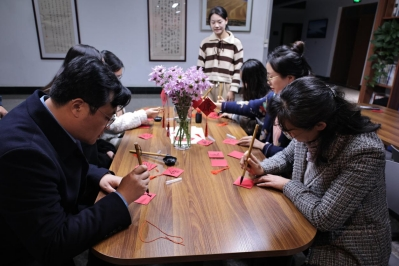 本次活动依托中华传统文化中的书法技艺,分为“写字”和“传意”两个环节。毛笔书法的书写过程需要专注和耐心,在“写字”环节,公司师生使用毛笔在共同方格红色纸张上书写“廉”和“德”字,不仅促进了彼此之间的交流,更增进了对廉德的内涵意义理解和认同,感受廉德文化的力量,进而潜移默化地树立了对廉洁和道德的追求和信仰。在“传意”环节,公司师生将书写的“廉”和“德”字作品用红色的流苏悬挂,传意喜庆祥和、祝福美好,让更多的人从欣赏到感悟至推崇。