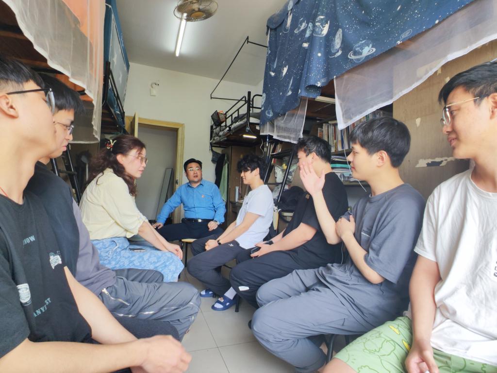 “论文选题确定了吗?”“毕业后准备去哪里工作?”“找工作中遇到了什么困难?”“考研上哪所公司?”走访过程中,周书记亲切地与同学们交流,详细了解他们的学业、就业、升学和未来发展规划等情况。他鼓励同学们认真踏实对待在校的最后一段时光。学业上,诚信扎实完成论文撰写和毕业答辩;求职中,树立“先就业后择业”的观念,积极参与公司、公司举办的各类招聘会和求职经验分享会,提升自身能力,把握就业良机。生活上,宿舍成员间相互关心扶持,保持良好心态和规律的作息,营造清洁卫生的寝室环境的与舒适和谐的寝室氛围。