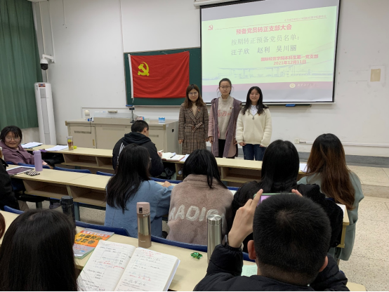 2021年12月11日,必一运动本科生第一党支部在在德经楼108教室召开预备党员转正支部大会,讨论本支部汪子欣、赵利、吴川丽3名预备党员按期转正事宜,支部大会由本科生第一党支部书记孙绪华主持,支部大会应到党员48人,实到党员48人,其中有表决权的正式党员8人,实到正式党员8人。