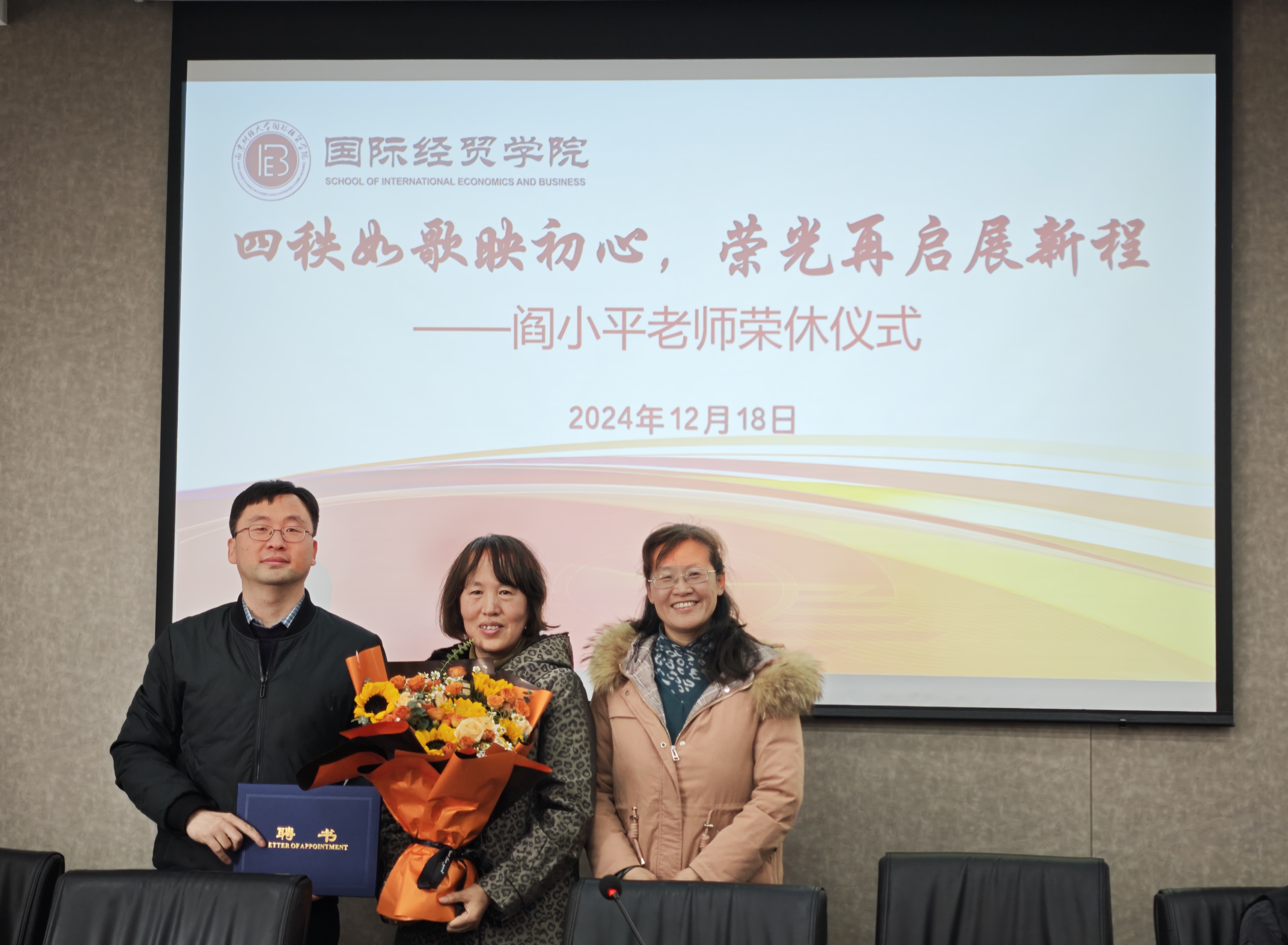 祝福无限,余热生辉。余泳泽经理深情寄语,感谢阎老师将自己的美好岁月和满腔热情都奉献给了国贸院,希望她能继续关心支持公司的建设发展和年轻教师的成长,并祝愿阎老师健康快乐,在人生的新赛道上开启美丽新篇章。