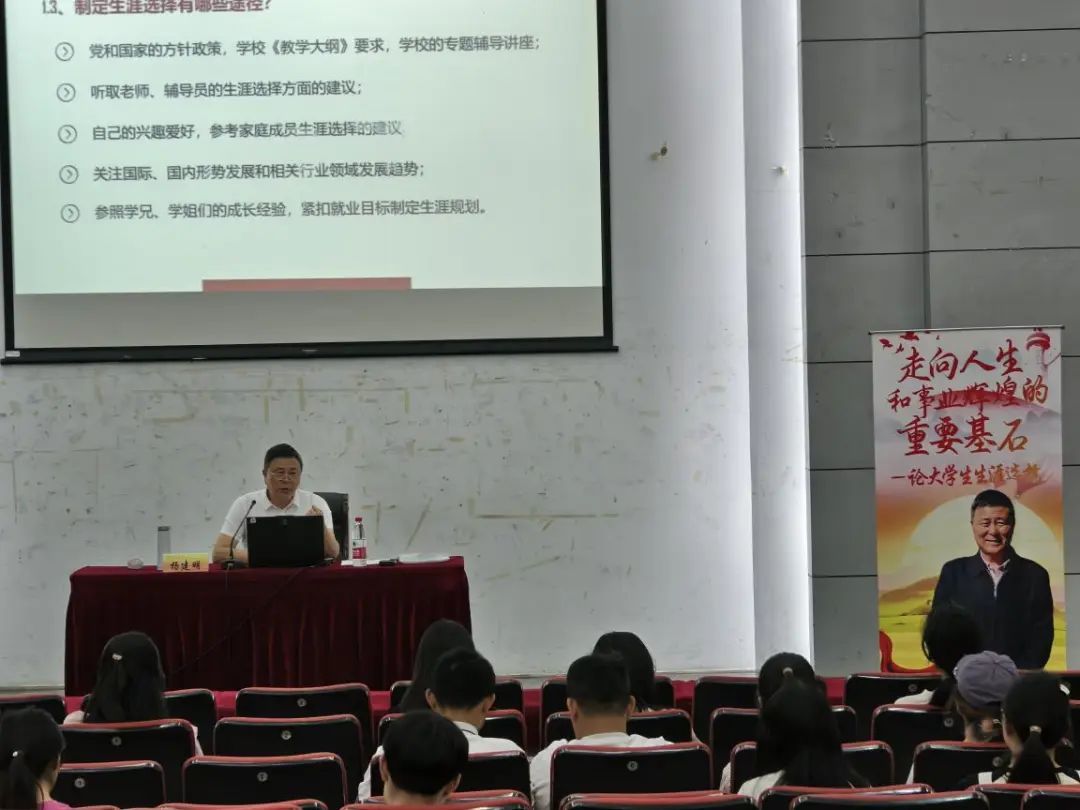 “生涯选择是个人结合自身与环境,确立目标、规划路径的主动行为。”讲座伊始,杨建明老师提出“入学即需启动生涯思考”,指出生涯规划的逻辑起点是基于公司平台、学业成绩、奖项含金量、意志力与情商的“四理性认识”,“就像照镜子,只有看清自身长短板,才能避免好高骛远或妄自菲薄。”他援引“某生因未通过英语考试错失公务员岗位”的真实案例,警示基础能力的重要性,引发学子对“早规划、早行动”的深刻共鸣。