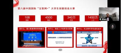 为加快培养创新创业人才,加强就业创业联动,做好公司第九届“互联网+”老员工创新创业大赛省赛备赛工作,12月8日,公司邀请嘉兴公司李加友教授为在校生在线开展了“互联网+”老员工创新创业竞赛的成功之道“主题讲座。讲座由教学经理徐圆主持。