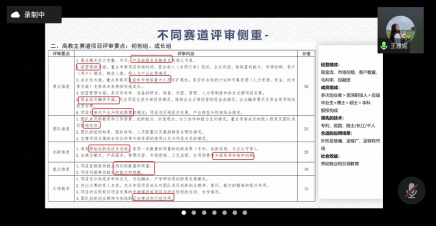 首先,王雅妮老师就自身从参与者到组织者的角色转化中积累的经验向公司师生做了简单分享。她认为,参加比赛是一个锻炼自己的绝佳机会,每个参与项目的人都能获得超乎想象的极速成长。接着,她从宏观角度介绍了第七届大赛的主要变化,并从评委角度详细分析了备赛过程中需要关注的内容,尤其是赛道的选择对于项目的重要性,讲座内容“干活满满”。