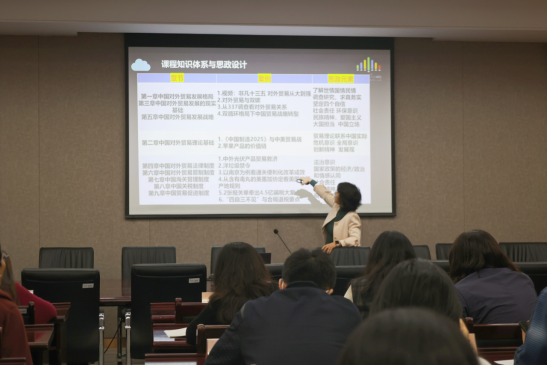 11月3日下午,公司在德经楼308会议室开展了第四场课程思政示范公开课活动。此次公开观摩由《中国对外贸易》课程组核心成员谢正勤老师主讲。各系主任、青年教师等40多位老师积极报名参加,党委书记张阳军、经理宣烨参与了公开观摩。活动由杨智华副经理主持。