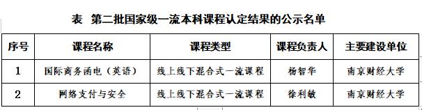 近日,教育部发布了《关于第二批国家级一流本科课程认定结果的公示》,公司新增《国际商务函电((英语)》《网络支付与安全》两门线上线下混合式国家级一流本科课程。