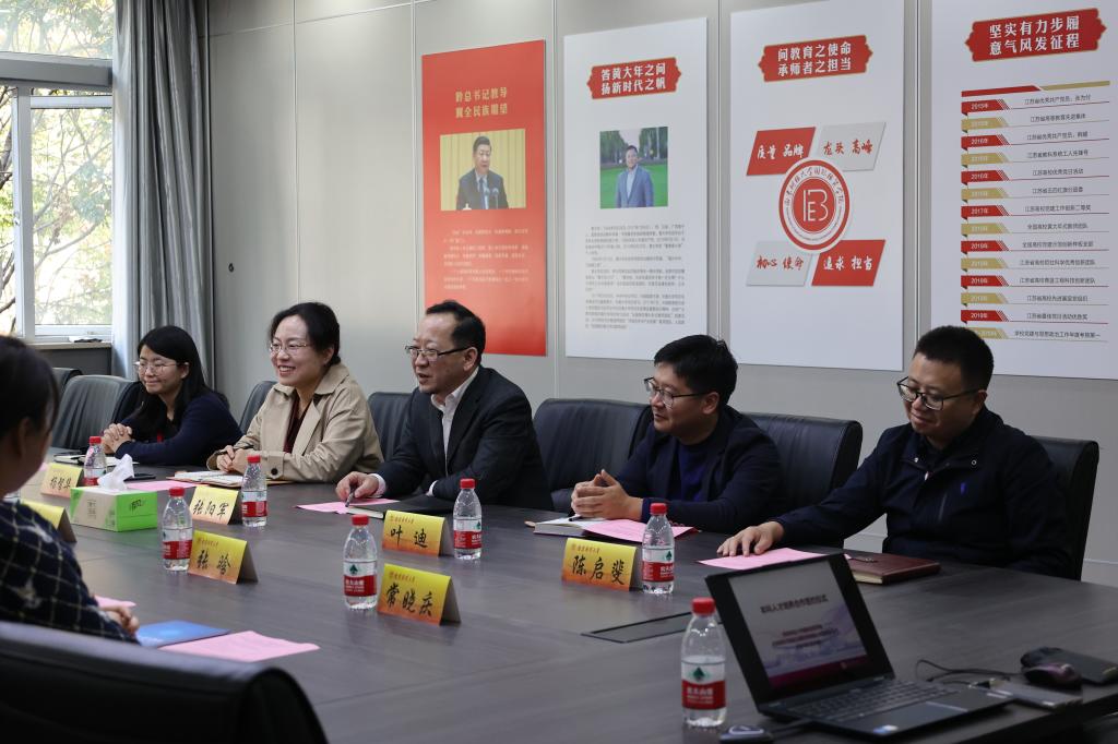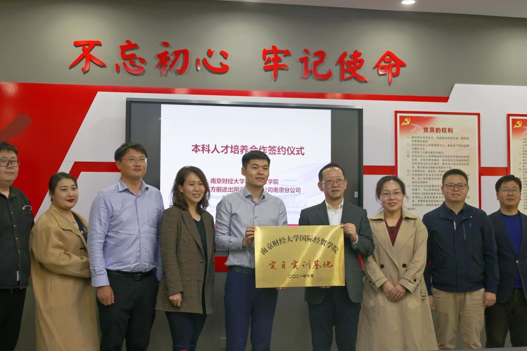 10月29日14时,公司同北京新东方前途出国咨询有限公司南京分公司本科人才培养合作签约授牌仪式在德经楼206会议室举行。公司党委书记张阳军、国际经济与贸易系主任叶迪、贸易经济系主任陈启斐、电子商务系副主任吴薇、北京新东方前途出国咨询有限公司助理副总裁、南京前途出国总经理徐博、南京分公司副总经理张晗、南京分公司市场总监杨辉、南京分公司仙林中心经理常晓庆、南京分公司市场经理殷昊出席本次签约仪式,仪式由必一运动副经理杨智华主持。